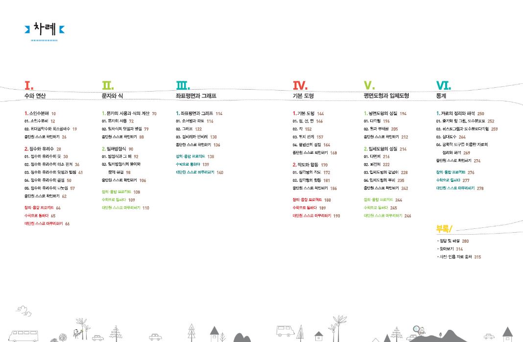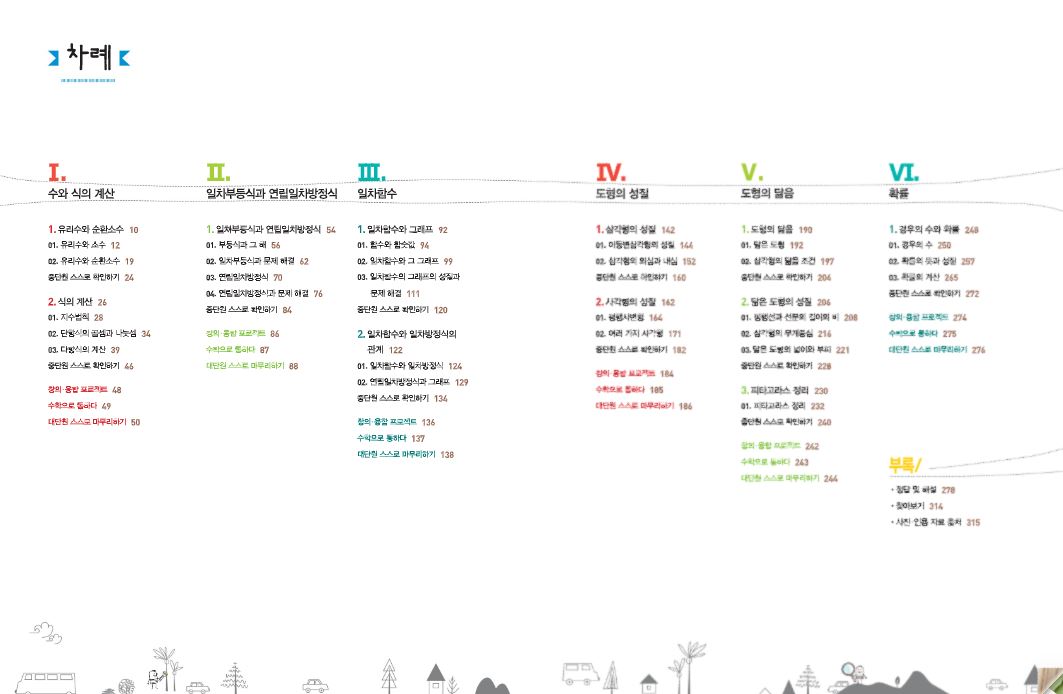 중학교 수학 지학사 교과서(장경윤 외 11인) - 중1, 중2, 중3 학년 차례